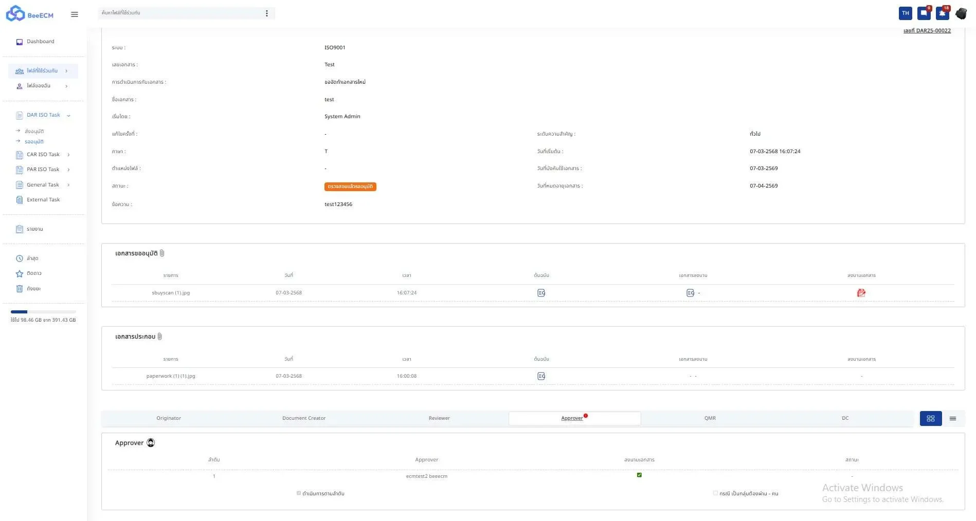 Workflow ขอดำเนินการทางเอกสาร (DAR)